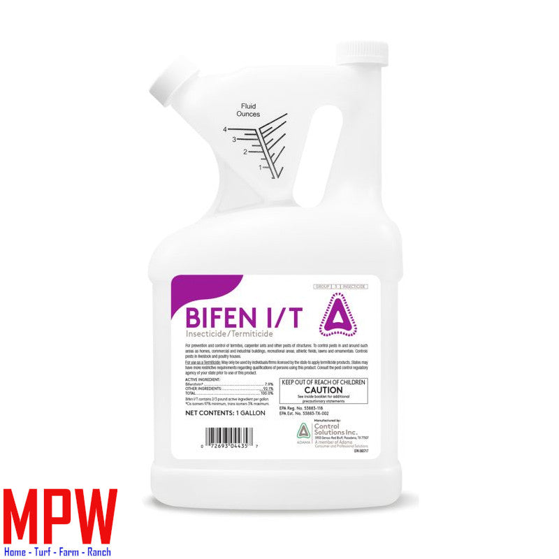 Bifen I/T contains 7.9% bifenthrin and provides excellent control of over 75 insect pests, leaves a long-lasting residual, is odorless, non-staining, dries clear and is safe around children and pets when used as directed.