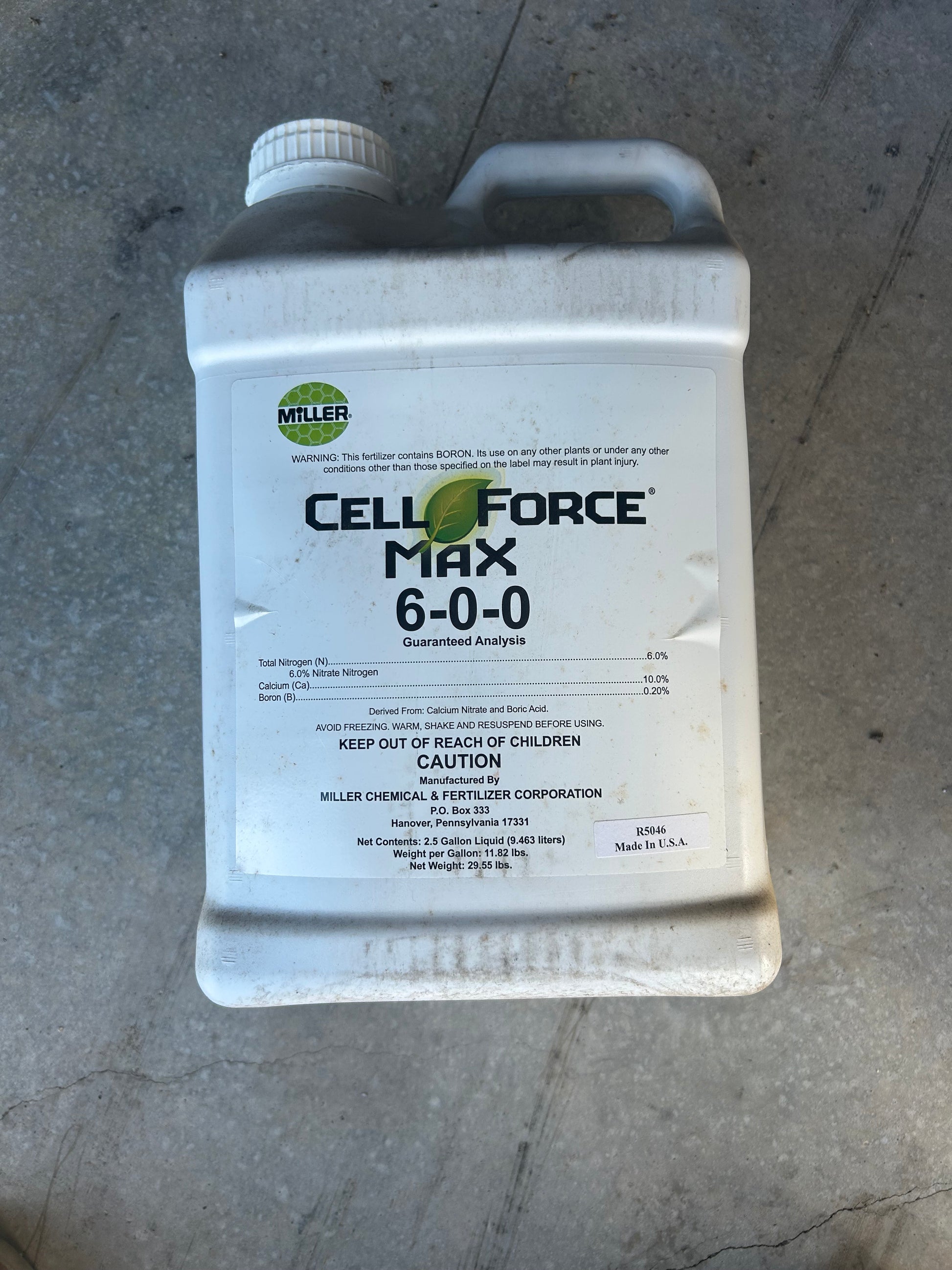 Cell Force® MAX 6-0-0 is a liquid fertilizer is a specialty fertilizer designed to help reduce the effects of plant stress as well as improve overall plant nutrition. We use the term “plant stress” in a general sense because there are a multitude of causative agents of stress, but they all induce similar negative effects in the plant. At a cellular level, plant stress induces the production of reactive oxidative substances (ROS). Over time, if not reduced or controlled, ROS leads to cell death. This is often expressed as loss of flowers, reduction in chlorophyll development, poor fruit set, fruit drop, and a reduction in fruit quality.