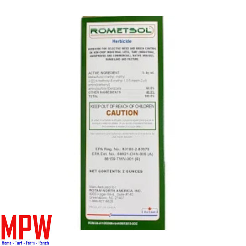 Rometsol herbicide is a non-selective weed and brush control product for non-crop industrial sites, turf (industrial, unimproved, commercial and ornamentals) also excellent for use in native grass areas, rangeland and pasture applications. Controls invasive grasses and broadleaf weeds in turf.