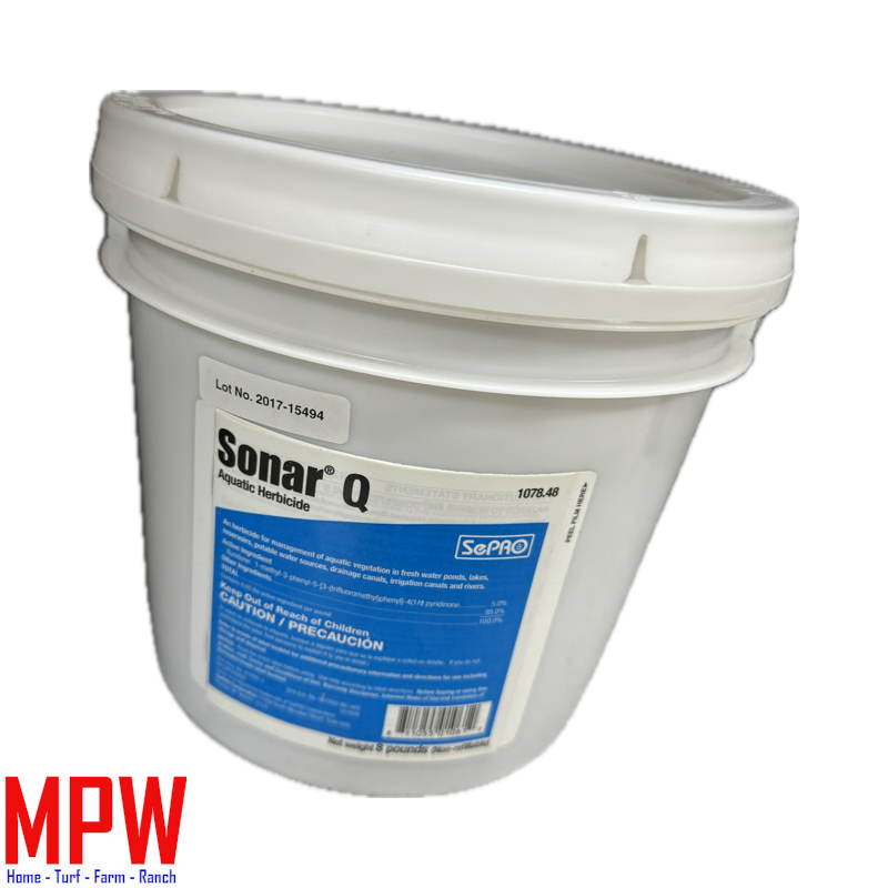 Sonar Quick Release, the latest innovation of the Sonar brand, accelerates the release of Sonar concentrations into the water column. Formulated as a 5% active ingredient on a 1/8-inch diameter granular pellet, Sonar Q quickly expands for an accelerated release providing better control in ponds with muck sediments and high organic content. When used in ponds, Sonar Q releases a higher amount of active ingredient into the plant than other Sonar pellet formulations in a shorter amount of time.